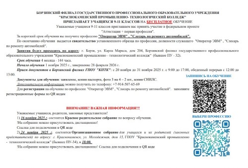 Добро пожаловать на официальный сайт Борзинского филиала ГПОУ "Краснокаменский промышленно-технологический колледж"!