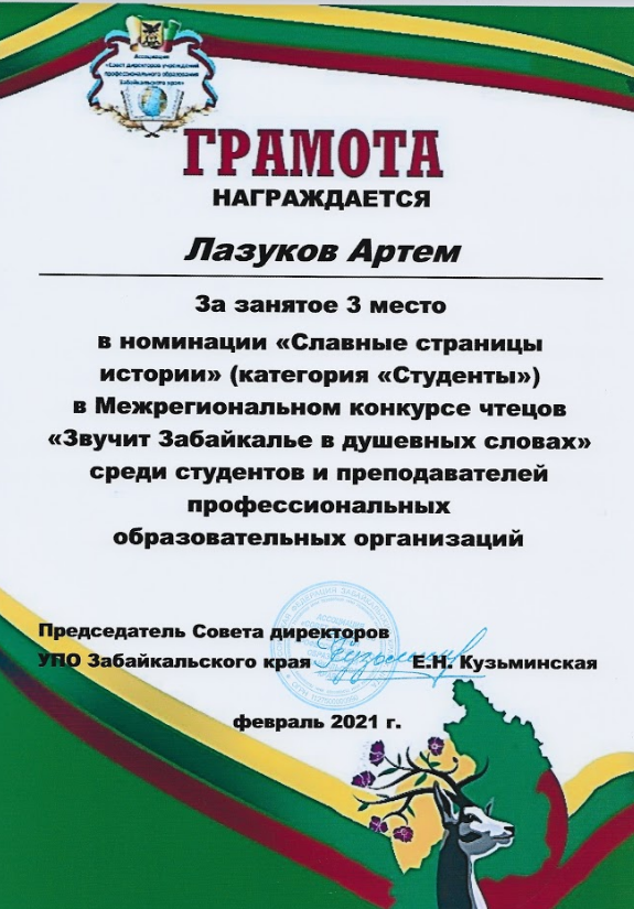 Успешное выступление нашего студента на V региональном Чемпионате "Молодые профессионалы"- Забайкальский край-2020